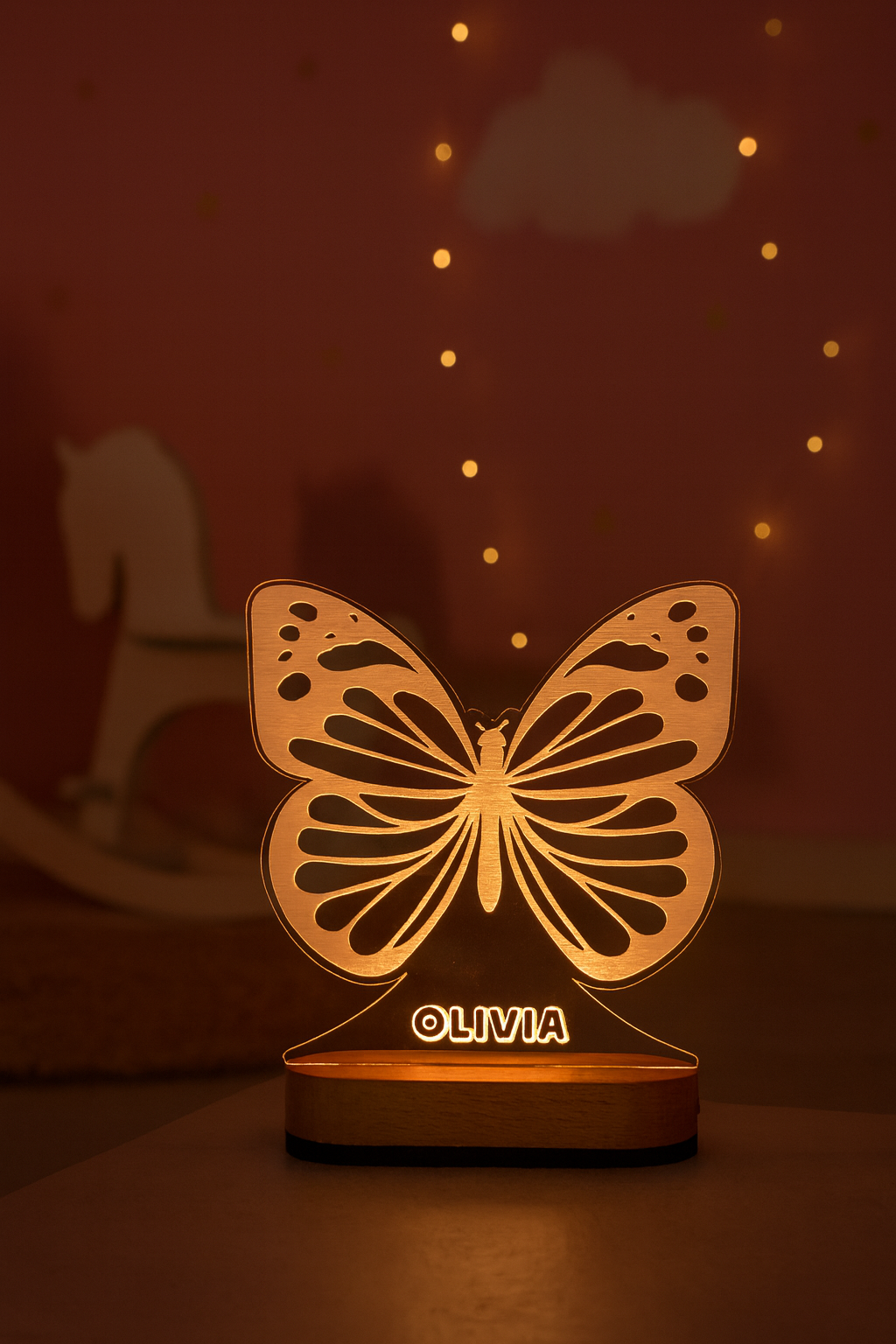 Personalized Butterfly Night Light with Name – LED Wooden Lamp for Kids & Nursery Room Decor