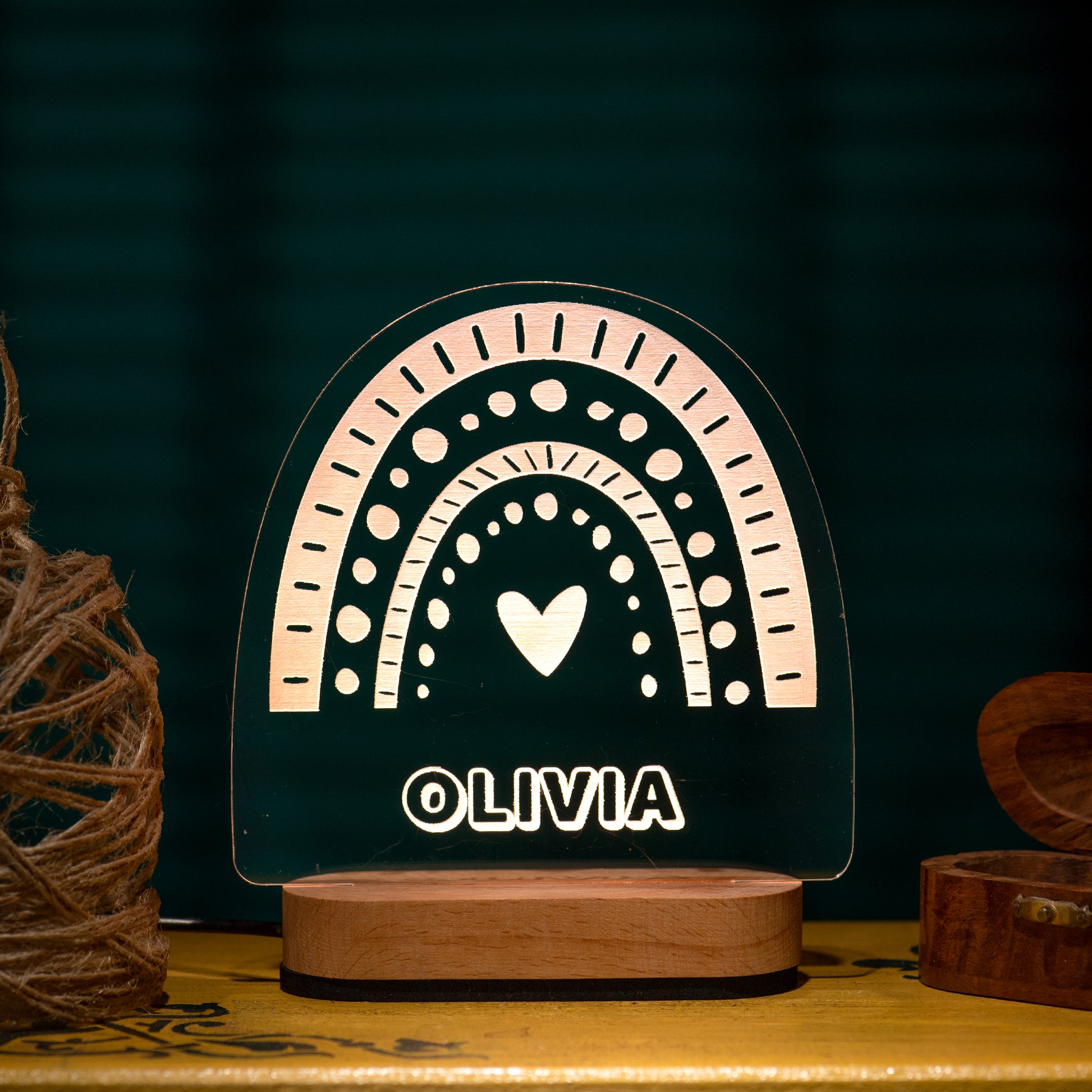 Personalized Rainbow Night Light with Name – LED Wooden Lamp for Kids & Nursery Room Decor